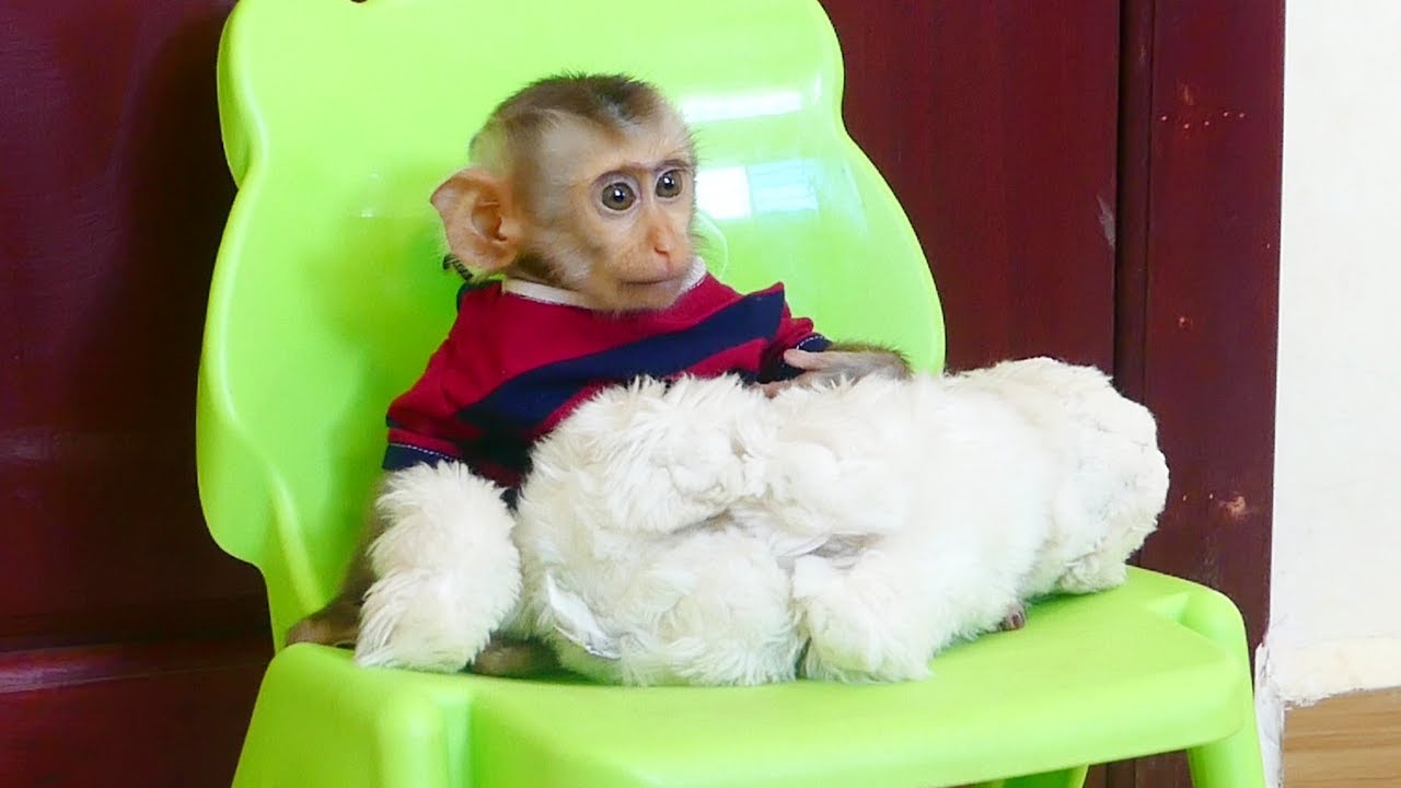 Monkey Nop Got New Friend Today, He Very Love New Baby Monkey, Nop Hug Baby