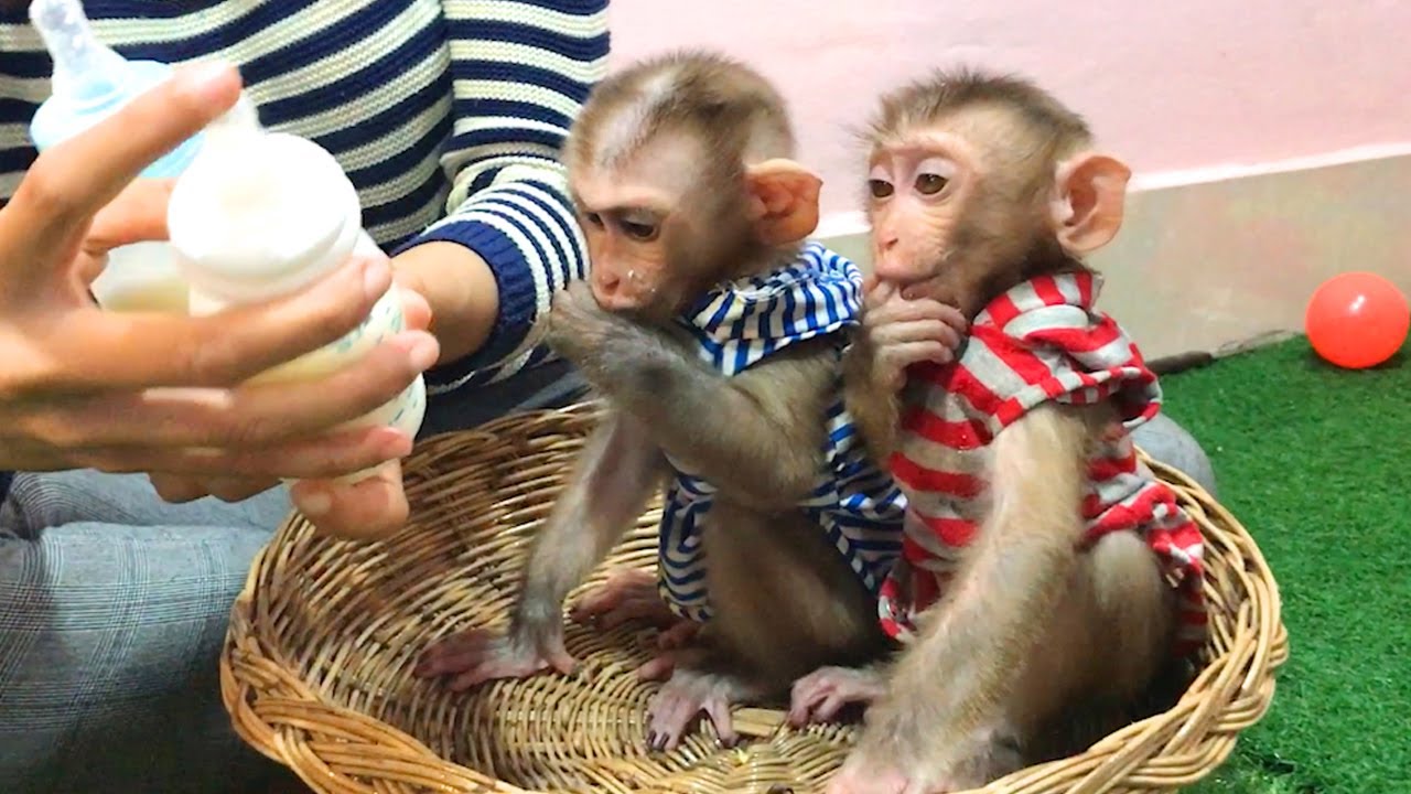 Milk time for the three monkeys