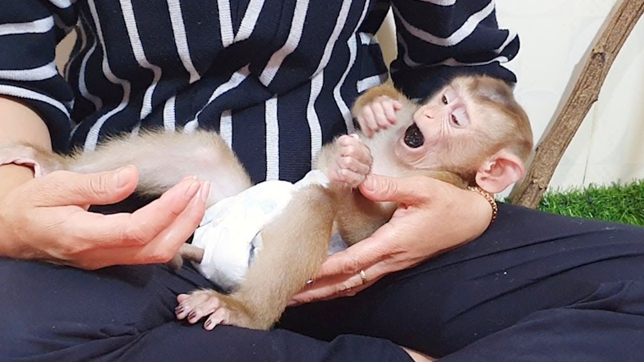 Never Seem My Princess Tiny Lola Stand Eating, Adorable Baby Monkey Lola Find Mom, Baby God Full
