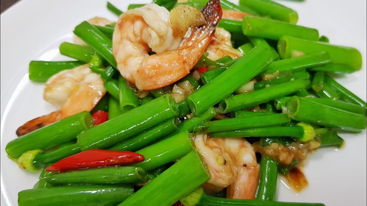 ตับผัดดอกหอม : Stir Fried Onion Flower Stem with Chicken Liver l Sunny Thai Food