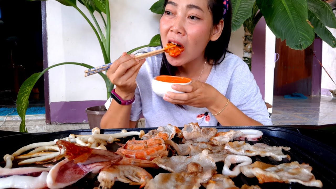 สวัสดีปีใหม่ไทยค่ะปาร์ตี้หมูกระทะสามพี่น้องย่างหมูสามชั้นหอมๆอีกเเล้วจ๊ะ