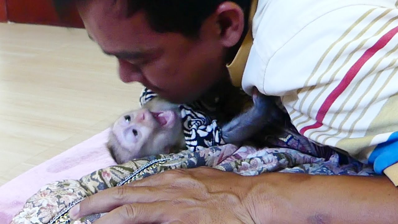 Bravo!! Orphan Baby monkey drinking milk with milk bottle