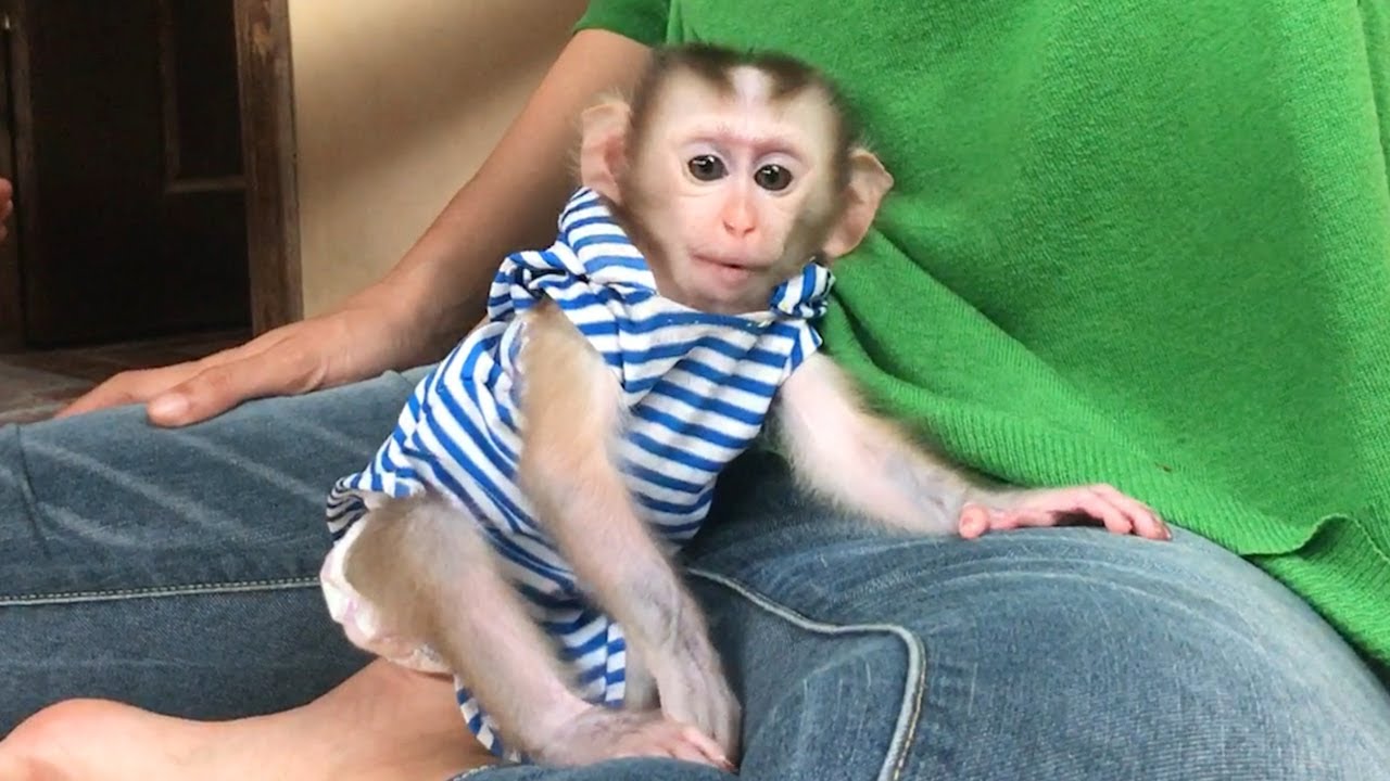 Happy Time To Play With Young Baby Monkey, Jino, Malo, Cris, Jinger, And Prin, They So Happy With Me