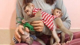Baby Monkey Mano Scare Sun Flower When Mom Want To Show Him, Mano Hug Mom Visit The Garden