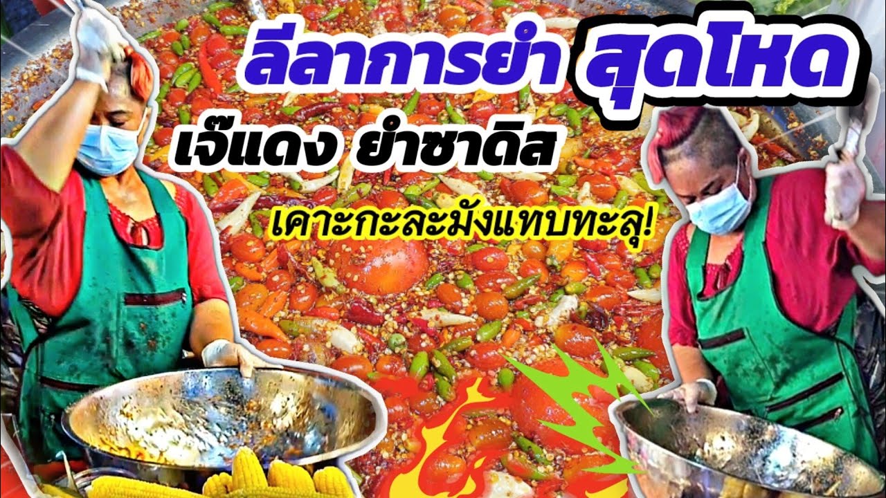 ยำมะม่วงกุ้งสดปูแป้นปลากรอบ!! ถาดใหญ่สุดแซ่บเผ็ดครบรส.