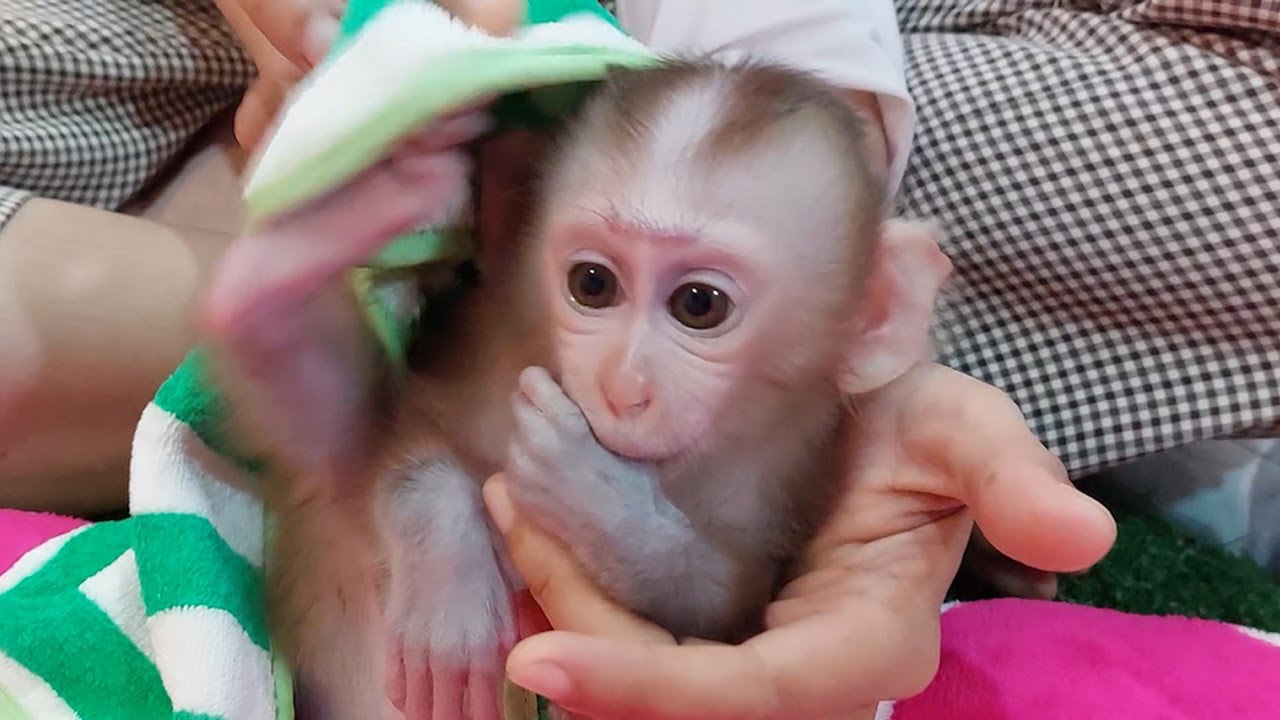 So cute Mino and Coconut monkeys asleep on mommy lap
