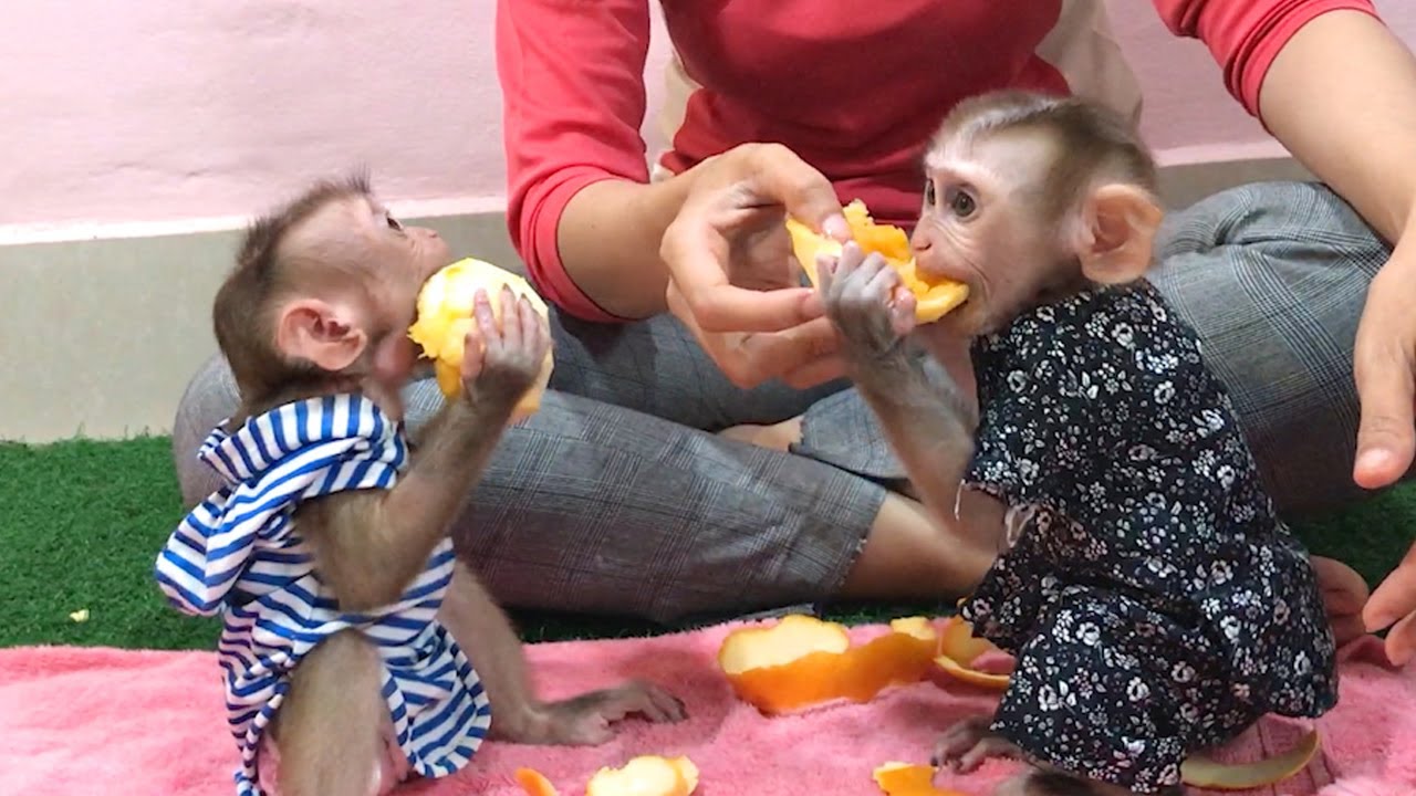 Amazing!!, Baby Monkey LUCAS Decide to Eat Mango Very Nice, Adorable Baby Lucas So Hungry Till Eat..