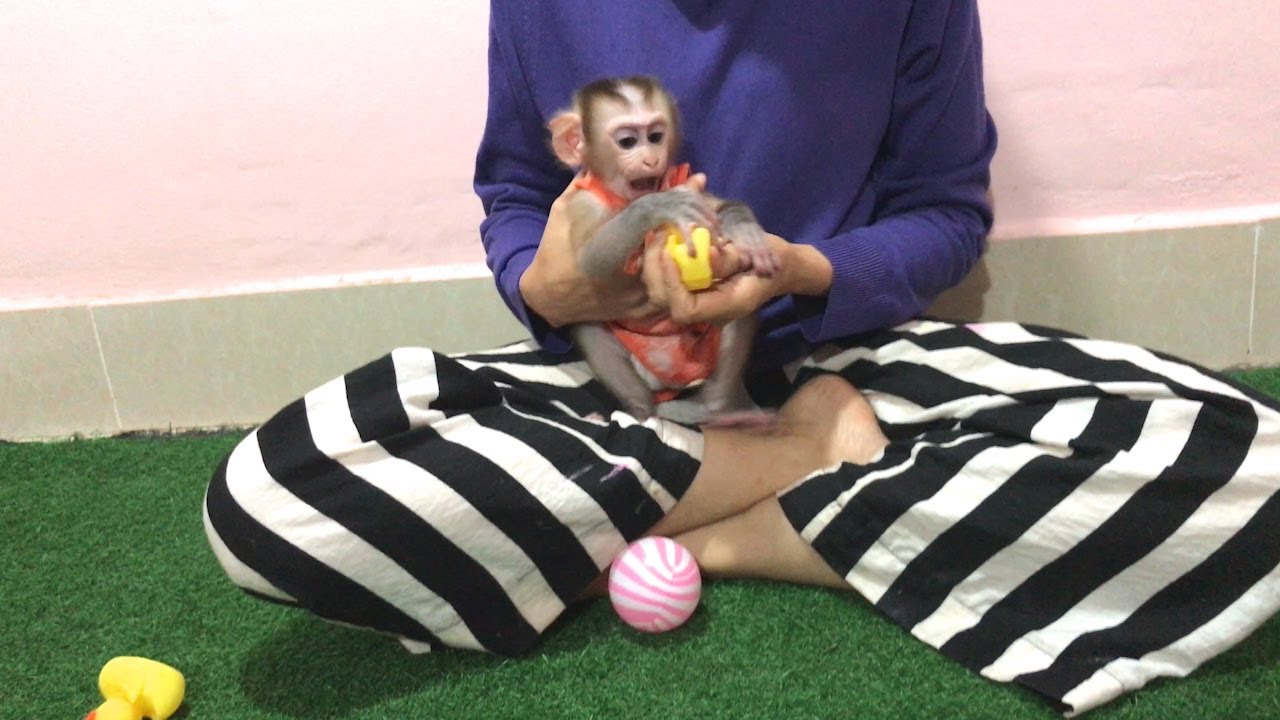 MILLION PITY BABY MONKEY CRY VERY HURT, BABY BRITTANY CAN WALK NOT SIT,BRINN VERY ITCHING BACK WOUND