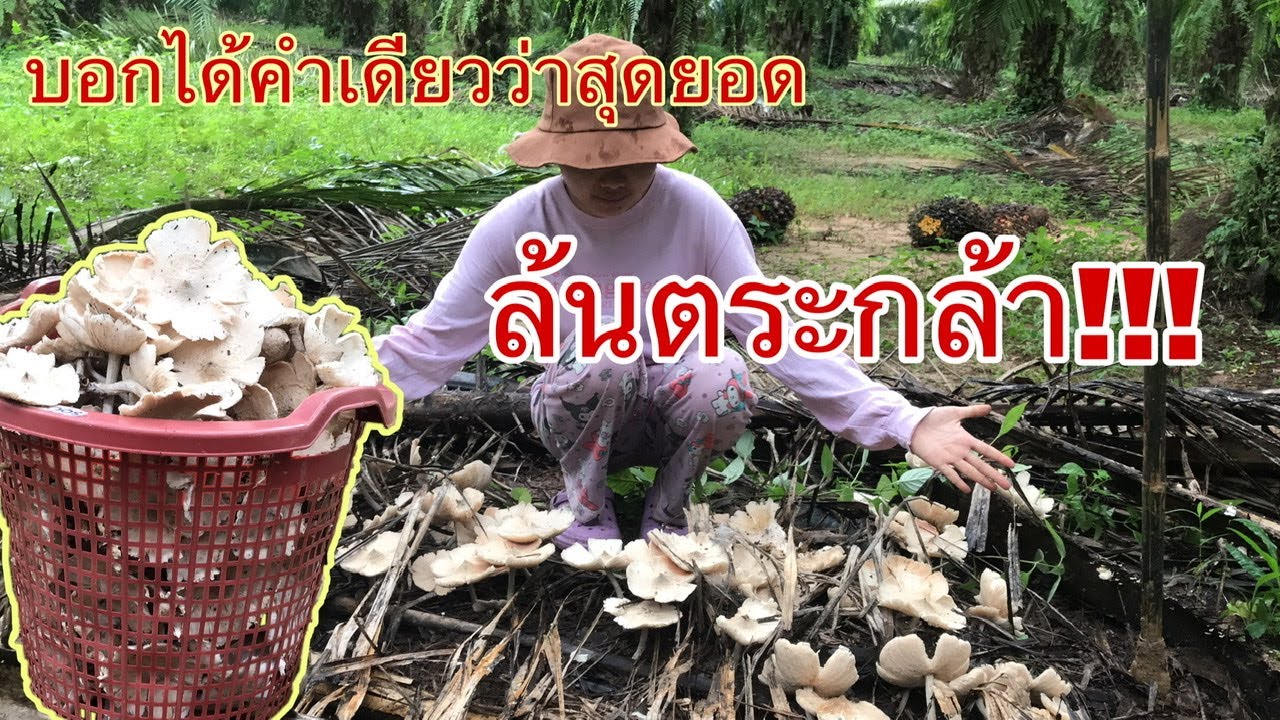 เก็บเห็ดฟางปาล์ม วันนี้ได้ครึ่งตะกล้าใหญ่มีแต่ดอกสวยๆม่วนๆหมานๆจ้า