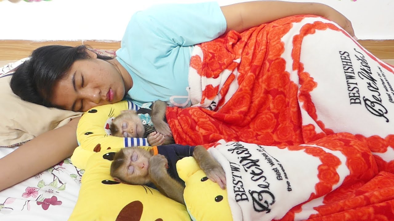 Wow Very lovely Orphan Baby Monkey Maku Sleeping on Hand Mom well After play small ball