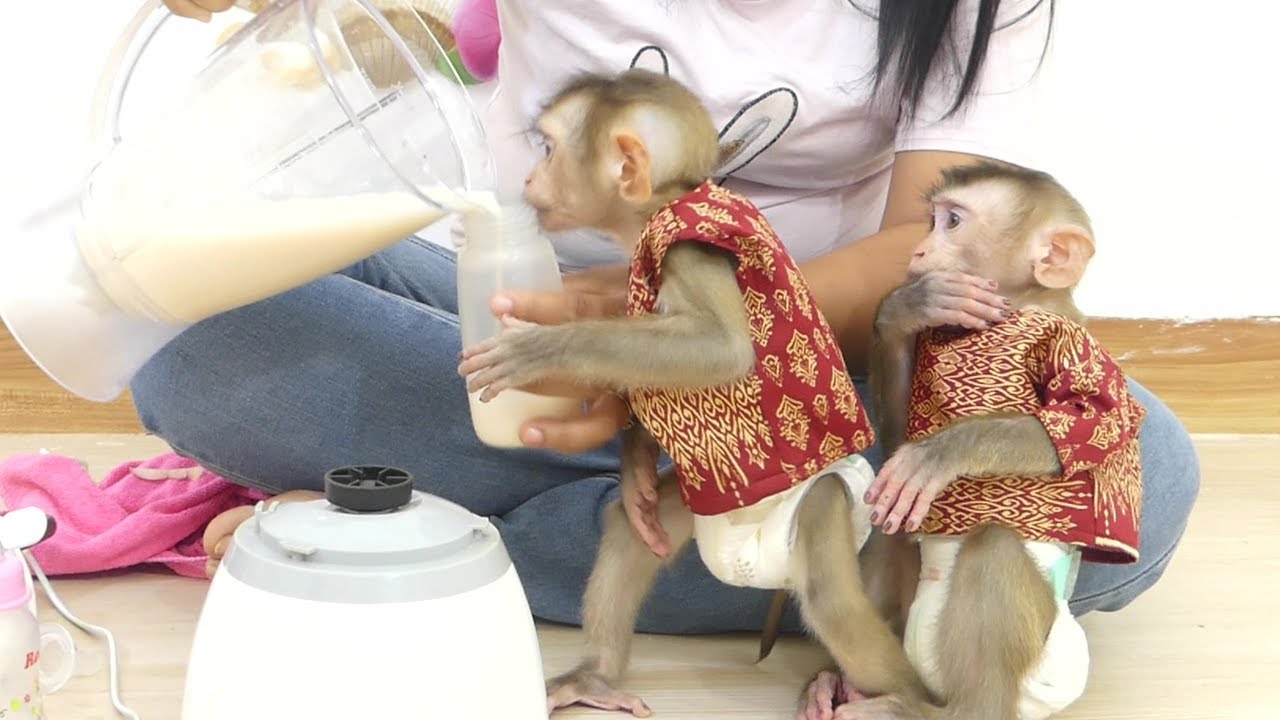 Bravo!! Orphan Baby monkey drinking milk with milk bottle