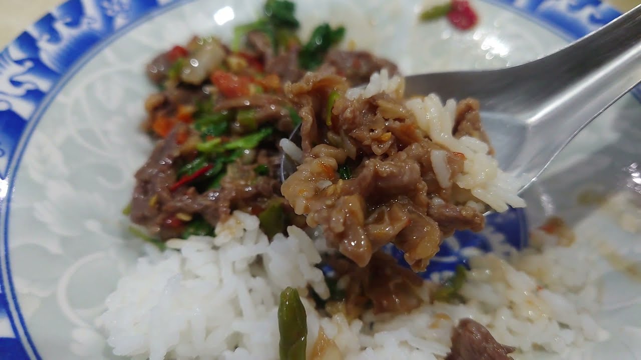 ผัดกระเพราเนื้อ กินกับข้าวสวยร้อนๆ รสชาติจัดจ้านมาก