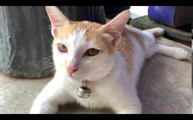 ลูกแมวใช้ยาหยอดตา ดูเหมือนเหนื่อยมากสำหรับลูกแมว