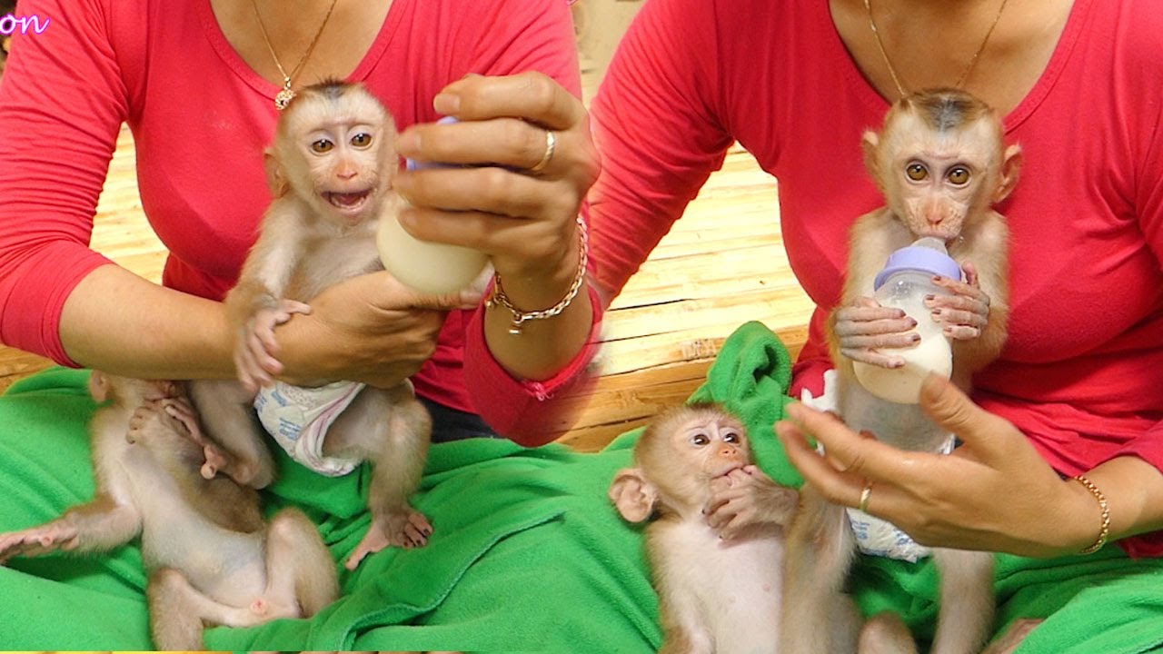 Lay Heang monkey got drunk of milk, fastly asleep