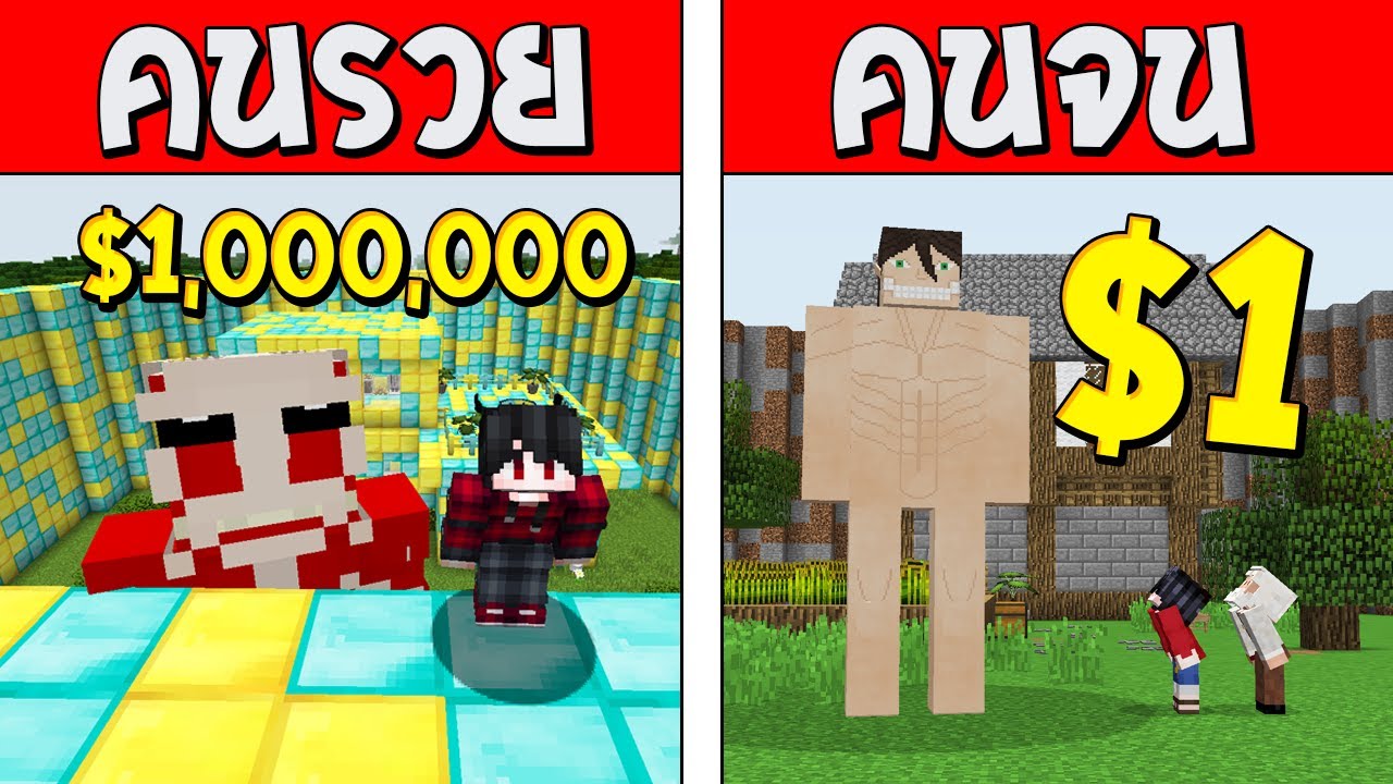 ถ้าเกิด!? บ้านไททันเอเลน คนจน $1 เหรียญ VS บ้านไททันเอเลน คนรวย $1,000,000 เหรียญ - Minecraft