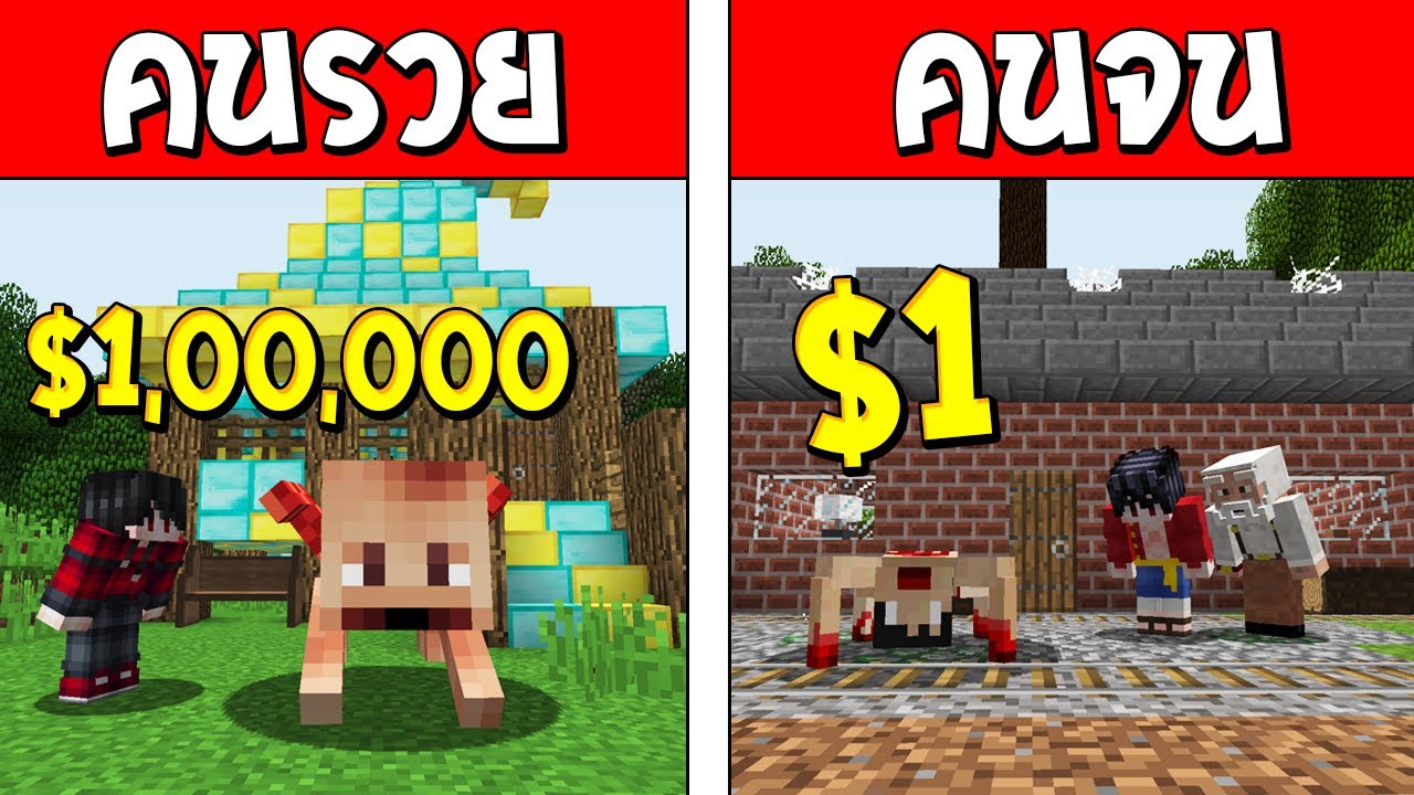ถ้าเกิด!? บ้านใต้ดินคนจน $1 เหรียญ VS บ้านใต้ดินคนรวย $1,000,000 เหรียญ - Minecraft พากย์ไทย