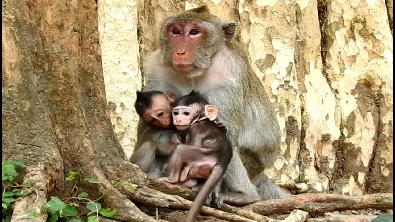 Break Heart Baby Monkey Cry Loudly, Monkey Attack Baby Cry Too Much, Monkey Try Hit Baby Cry