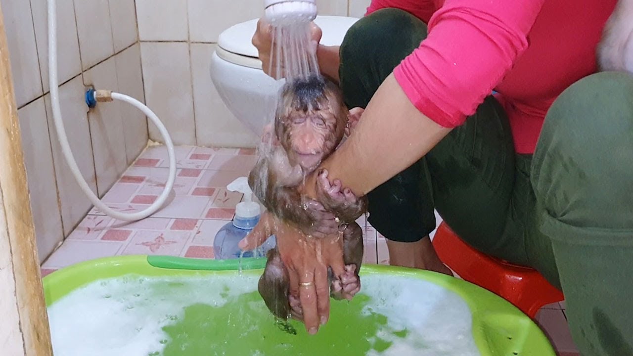 Heart Cruel Shocking, Pity Baby Monkey Very Scare, April Monkey Save Her Own Baby Back