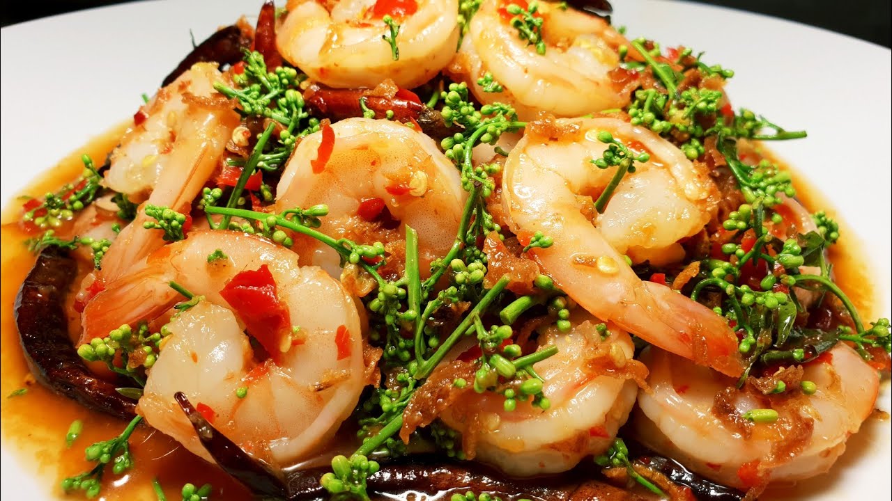 แซลมอนผัดพริกขี้หนู Fried salmon with bird chili