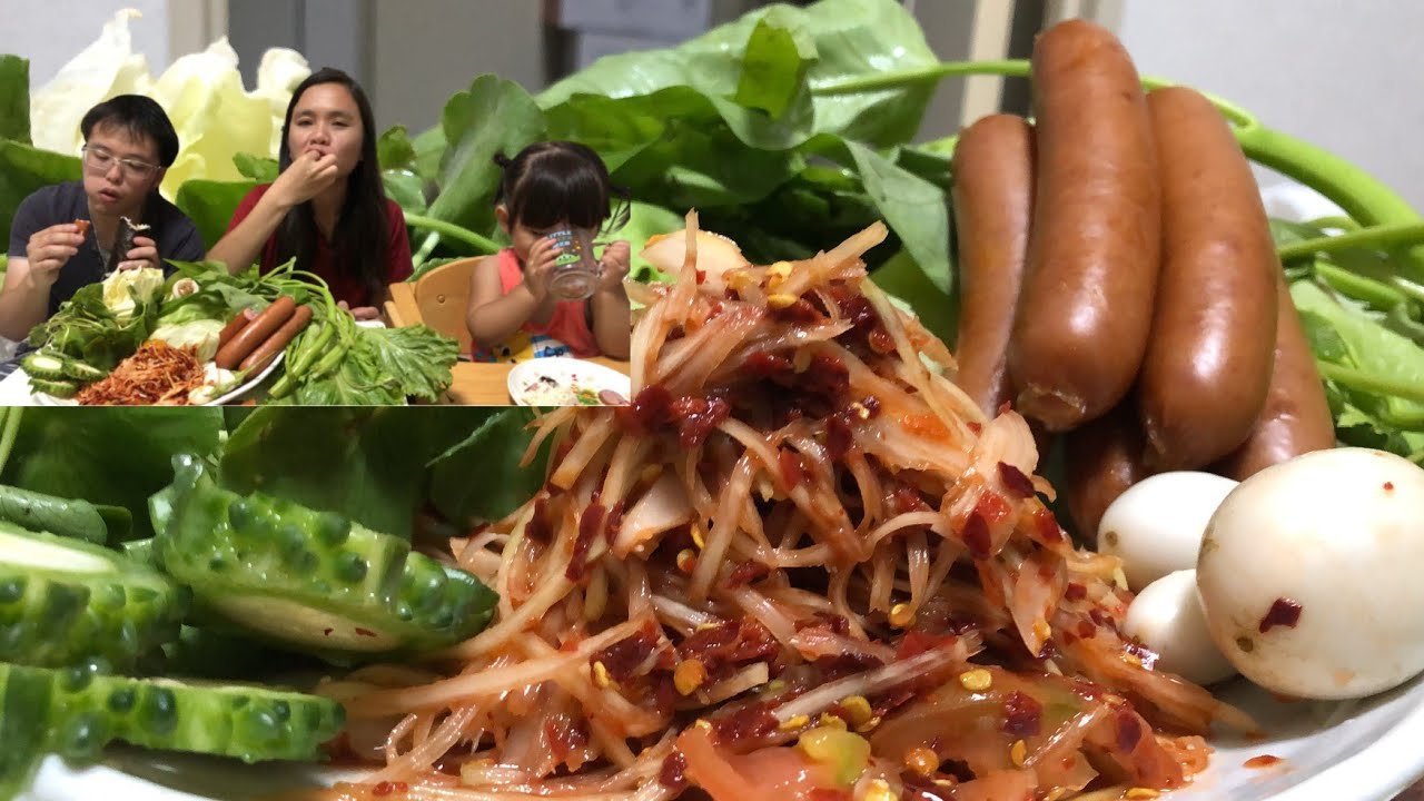 มื้อนี้กินข้าวเที่ยงกับลูกจ้า แจ่วปลาแดกบอง ส้มผักแป้นไส้กรอก ไข่ดาว😋 Nanami happy family