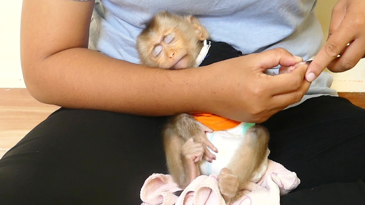 Bravo!! Orphan Baby monkey drinking milk with milk bottle