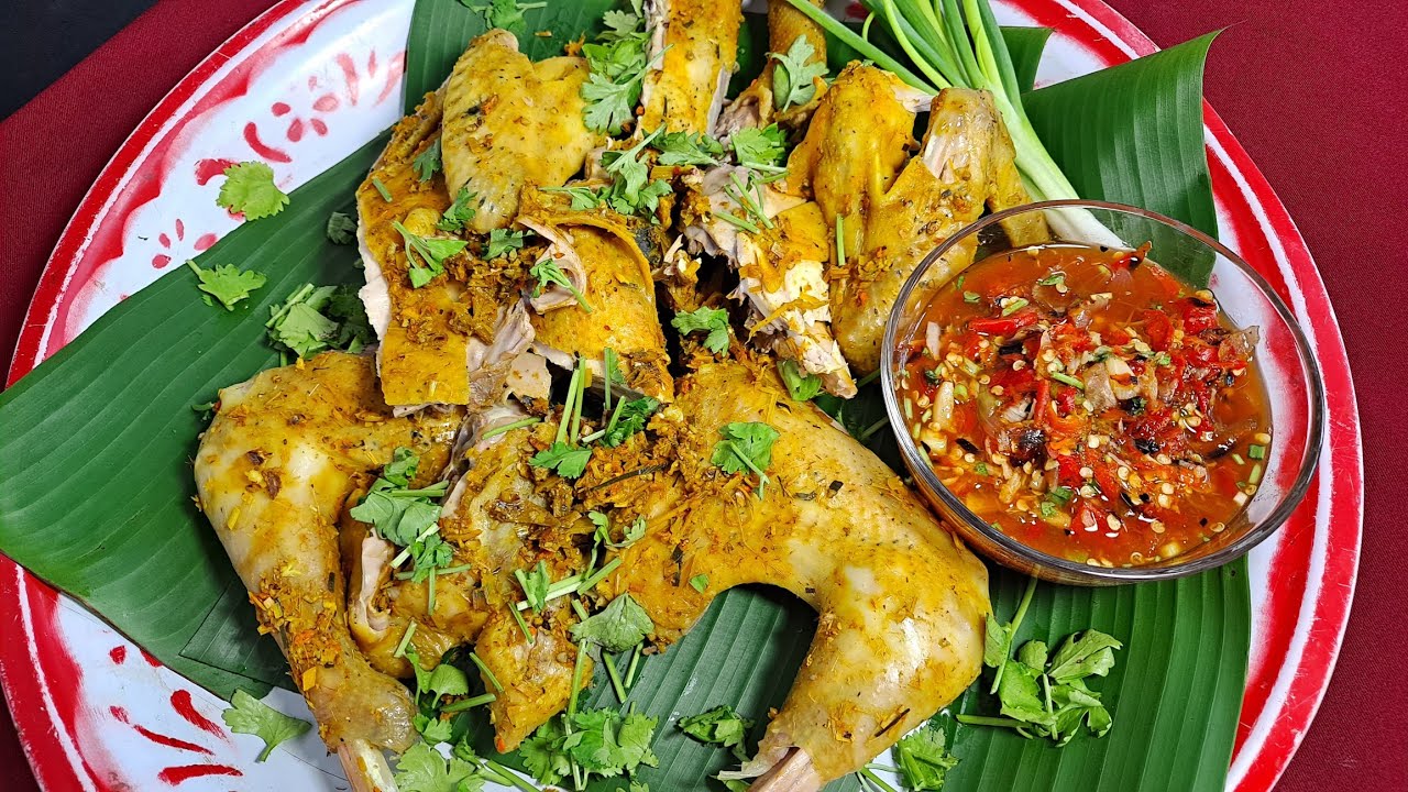 ไก่บ้านนึ่งสมุนไพร ตัวใหญ่ๆเนื้อหนึบนุ่มอร่อยมากๆ.