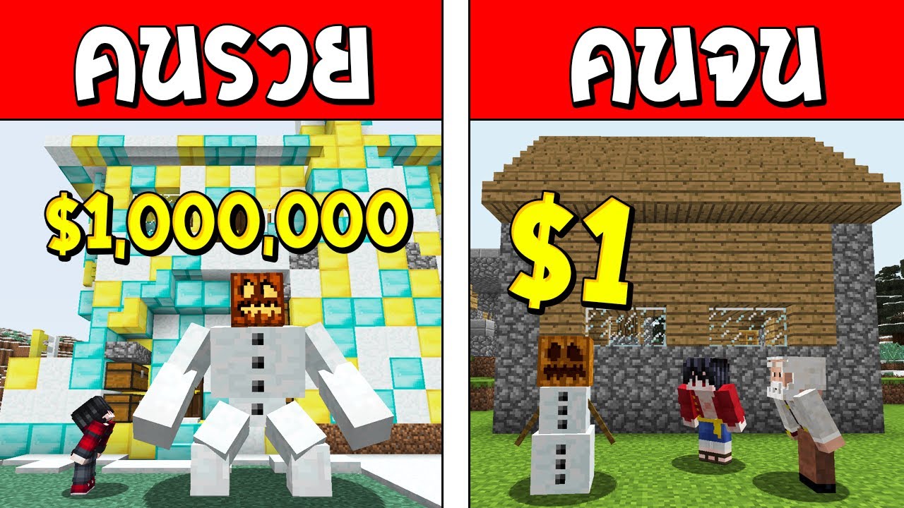 ถ้าเกิด!? บ้านNPCยาว คนจน $1 เหรียญ VS บ้านNPCยาว คนรวย $1,000,000 เหรียญ - Minecraft พากย์ไทย