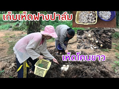 เก็บเห็ดในกองปาล์ม เก็บทุกวันก็เยอะทุกวันไม่มีผิดหวัง