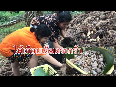 เก็บเห็ดในกองปาล์ม เก็บทุกวันก็เยอะทุกวันไม่มีผิดหวัง