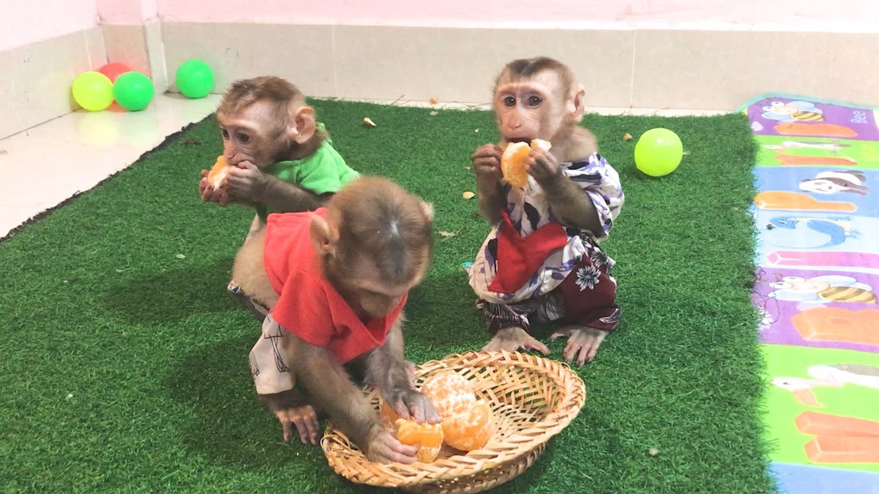 MY GOD!!, BABY MONKEY SLEEP DOESN'T KNOW WHAT HAPPEN TO HER, BRINN HUNGRY TILL EAT ORANGE LIKE THIS