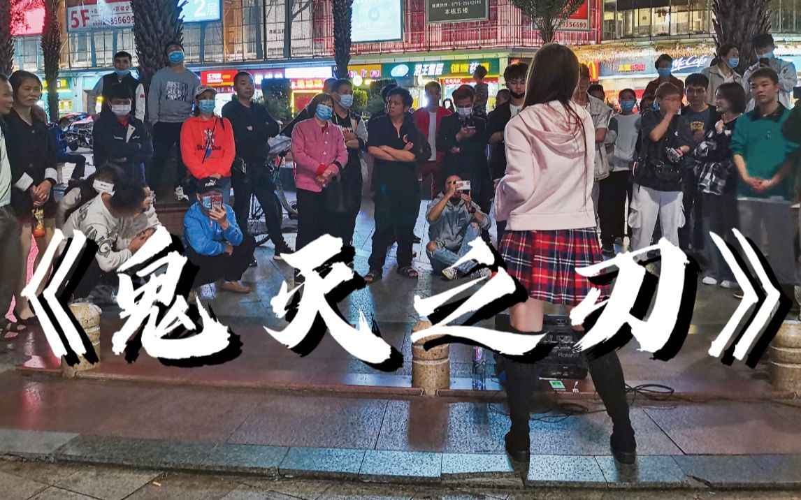 ร้องเพลงประกอบการ์ตูนดาบพิฆาตอสูรกลางถนนในเซินเจิ้น