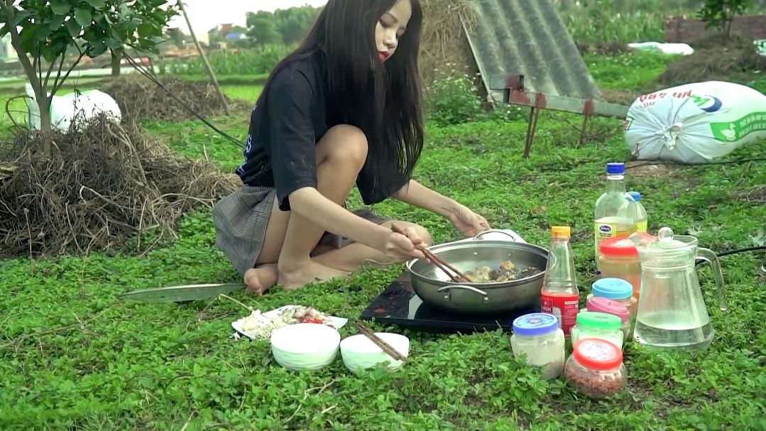 สาวสวยจากเมืองจวี้อันขายไก่ผัดพริก ใช้ไก่ 6 ชั่ง น้ำมัน 6 ชั่ง และพริก 3 ชั่ง เมื่อผัดจนแห้งแล้วเหลื