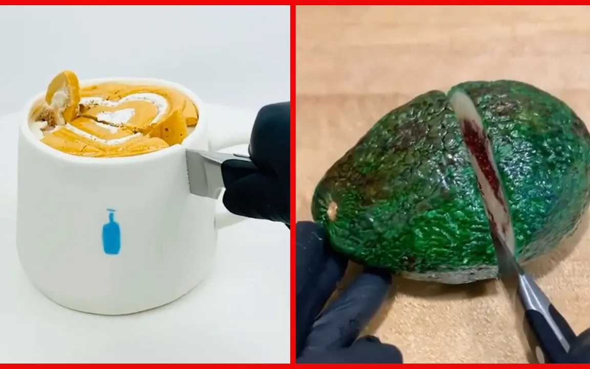 วิดีโอตัดเค้กที่น่าพอใจ เค้กภาพลวงตา Hyperrealistic โซ เทสตี้ พลัส เค้ก