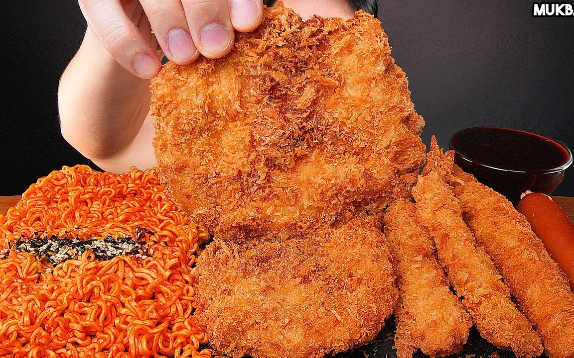 ASMR มุกบัง SPICY BBURINKLE CHICKEN 🍗 ก๋วยเตี๋ยวไฟ CHEESE BALL CORN DOG EATING