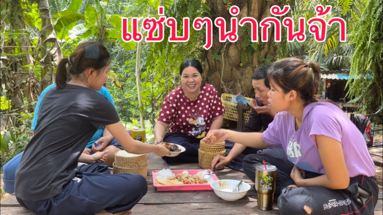 หักหน่อไม้บ้านป้าตุ๋มมาแกงแซ่บๆใส่กบนาที่ไปจับมาและพาไปเก็บใบย่านางริมเขาวิวสวยๆ