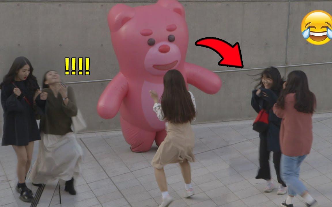 ตลกตื่นขึ้นเล่นแผลง ๆ พวกเขาไม่มีความคิดที่หมียักษ์จะเคลื่อนไหว