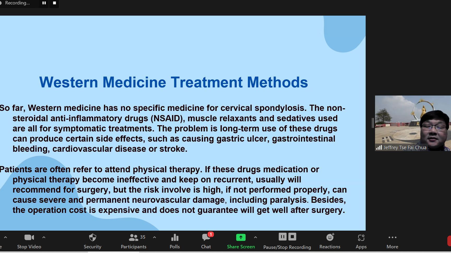 Invited by Philippine Traditional Chinese Medicine and Acupuncture Association (PTCMAA) to report on the topic: "Understanding Cervical Spondylosis According to Chinese Medicine Sciences Perspective". 受菲律賓中醫藥與針灸協會(PTCMAA)邀請,報告題目是:《從中醫科學角度認識頸椎病》.
