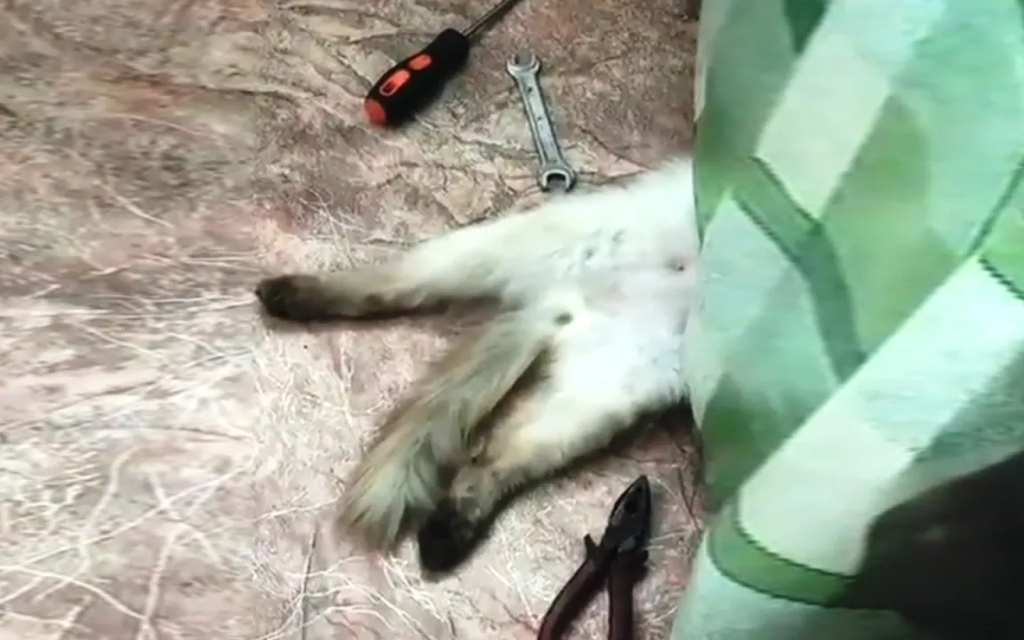 นี่คือลูกแมวตัวหนึ่งที่ซักผ้าให้แห้งและถูกฝังไว้