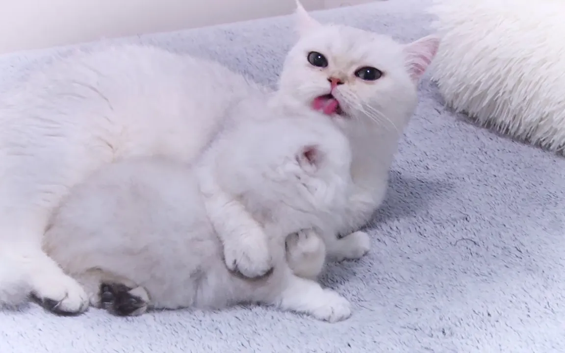 แม่แมวสก็อตติช โฟลด์ พูดคุยกับลูกแมวอายุ 2 สัปดาห์ ให้อาหารและทำความสะอาด