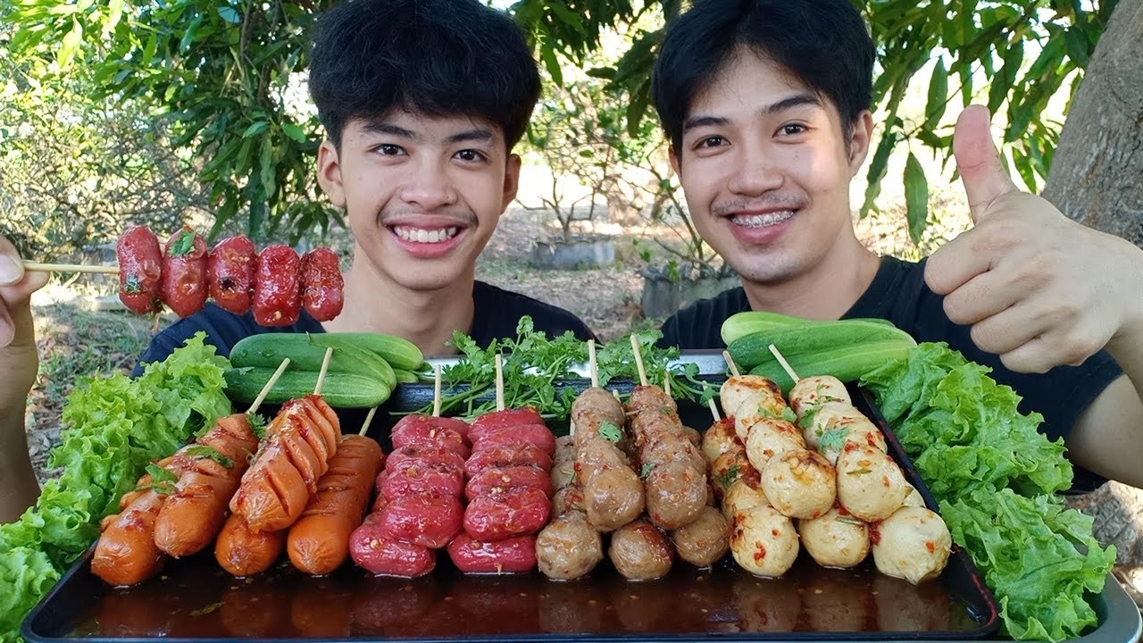 ไส้กรอกอิสาน แหนมหมูดอนเมือง กินพร้อมผักพริกขิงแตงร้อนๆ.