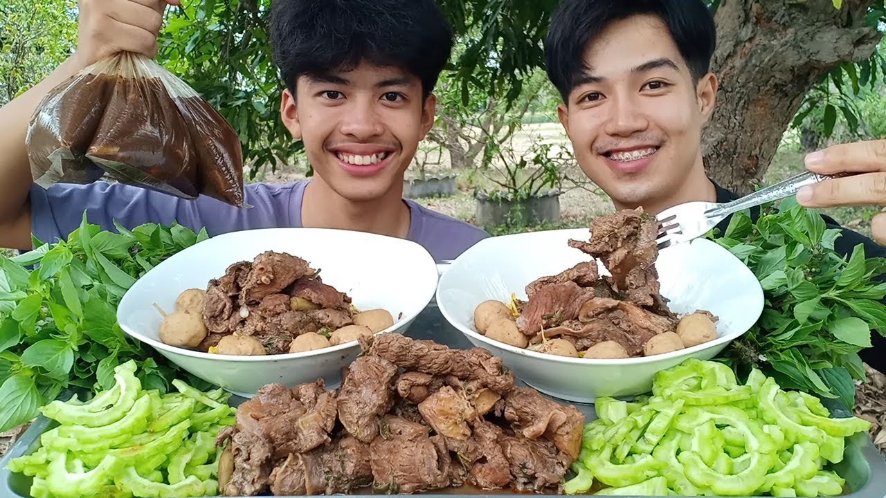 นํ้าพริกผักต้ม 3สหาย หนังวัวทอดกรอบสะท้านแผ่นดินชิ้นใหญ่ๆ