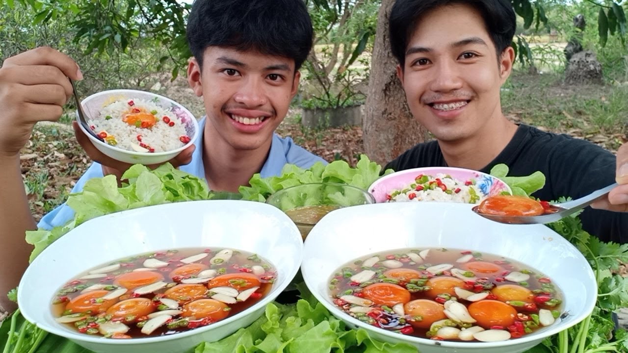 กินไข่ดองซีอิ้ว คนละ8ฟอง ไข่หนึบหวานมัน ข้าวสวยร้อนๆพร้อมนํ้าจิ้มซีฟู้ด.