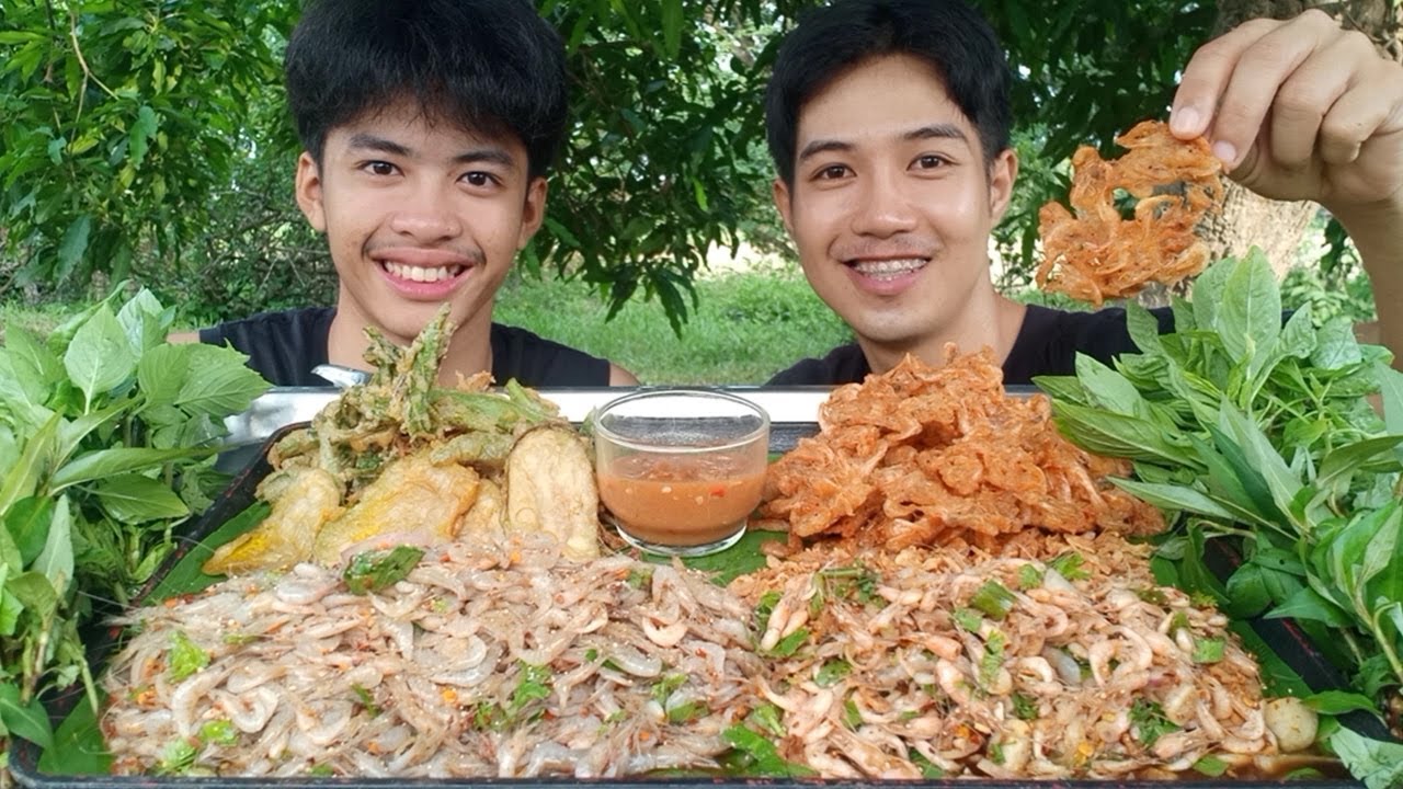 ส้มตำปูปลาร้า รสเผ็ดแซ่บกับกุ้งเต้นสามซ่าสุดมัน.
