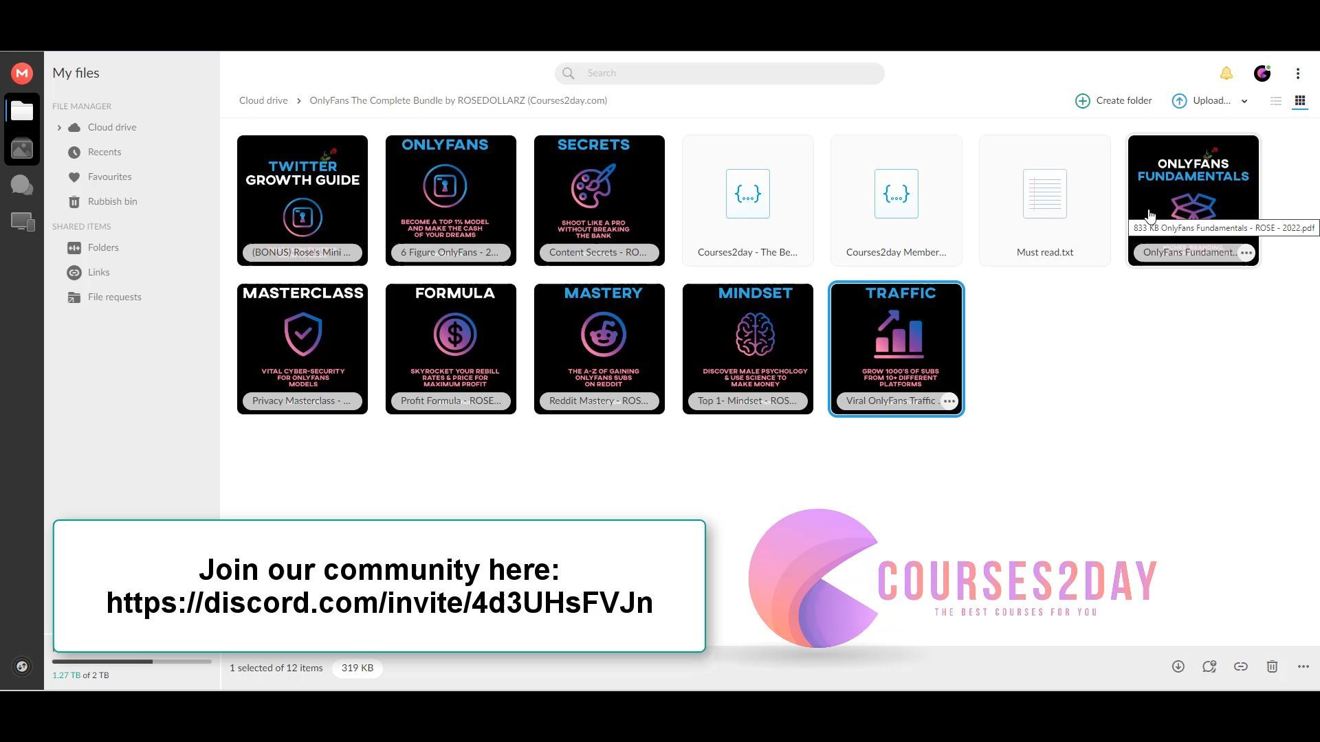 If you don't see this link working at Courses2day.org it may have been removed, please contact me via my email or discord for support and direct purchase of this course.