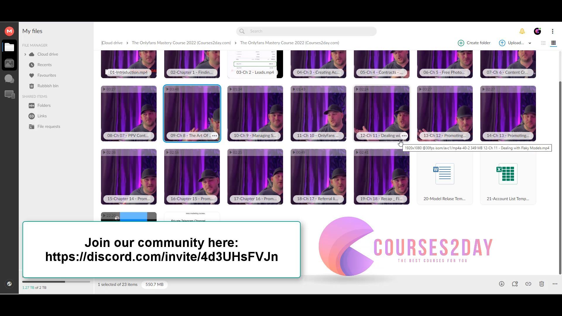If you don't see this link working at Courses2day.org it may have been removed, please contact me via my email or discord for support and direct purchase of this course.