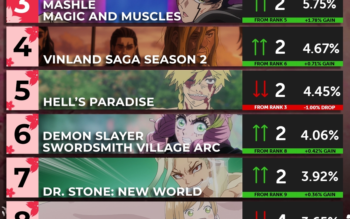 สัปดาห์ที่สองของรายการ R เดือนกรกฎาคม: Jobless Reincarnation อยู่ในอันดับที่ 1, มหาท่านผนึกมาร อยู่ใ