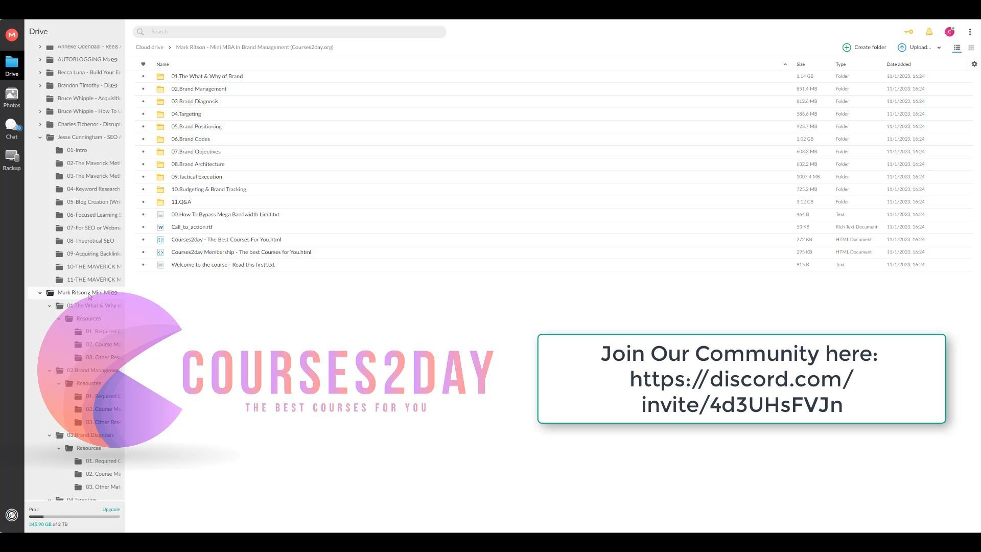 If you don't see this link working at Courses2day.org it may have been removed, please contact me via my email or discord for support and direct purchase of this course.