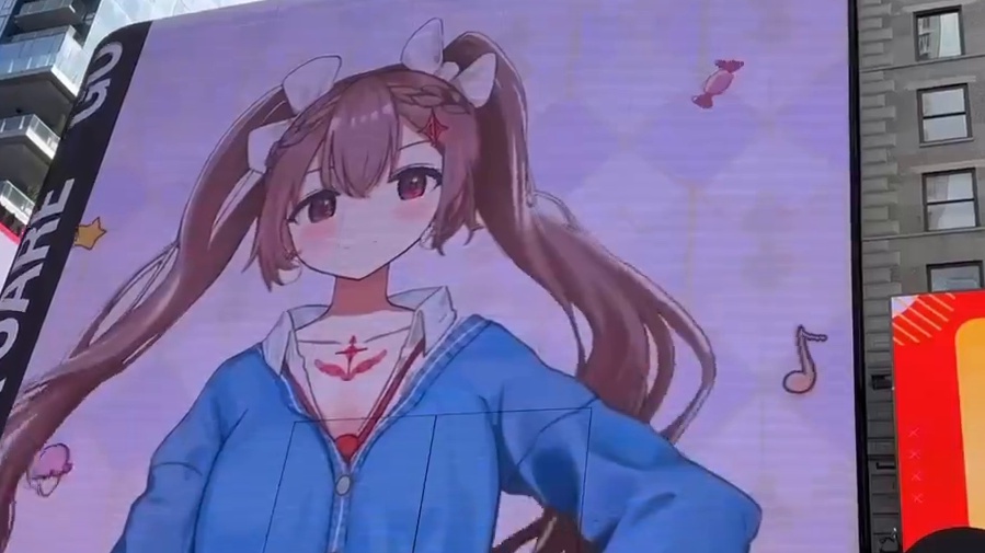 ยูกิโนะปรากฏตัวบนจอภาพยนตร์ในไทม์สแควร์ นิวยอร์ก