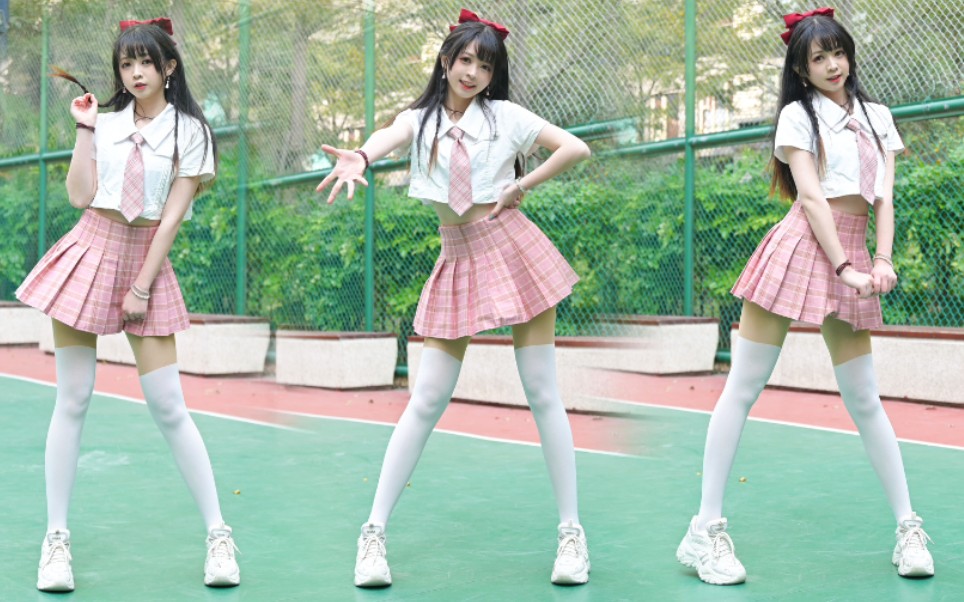 เต้นเพลง Natsuiro Egao de One Two Jump! กับกระโปรงสั้นสีไข่