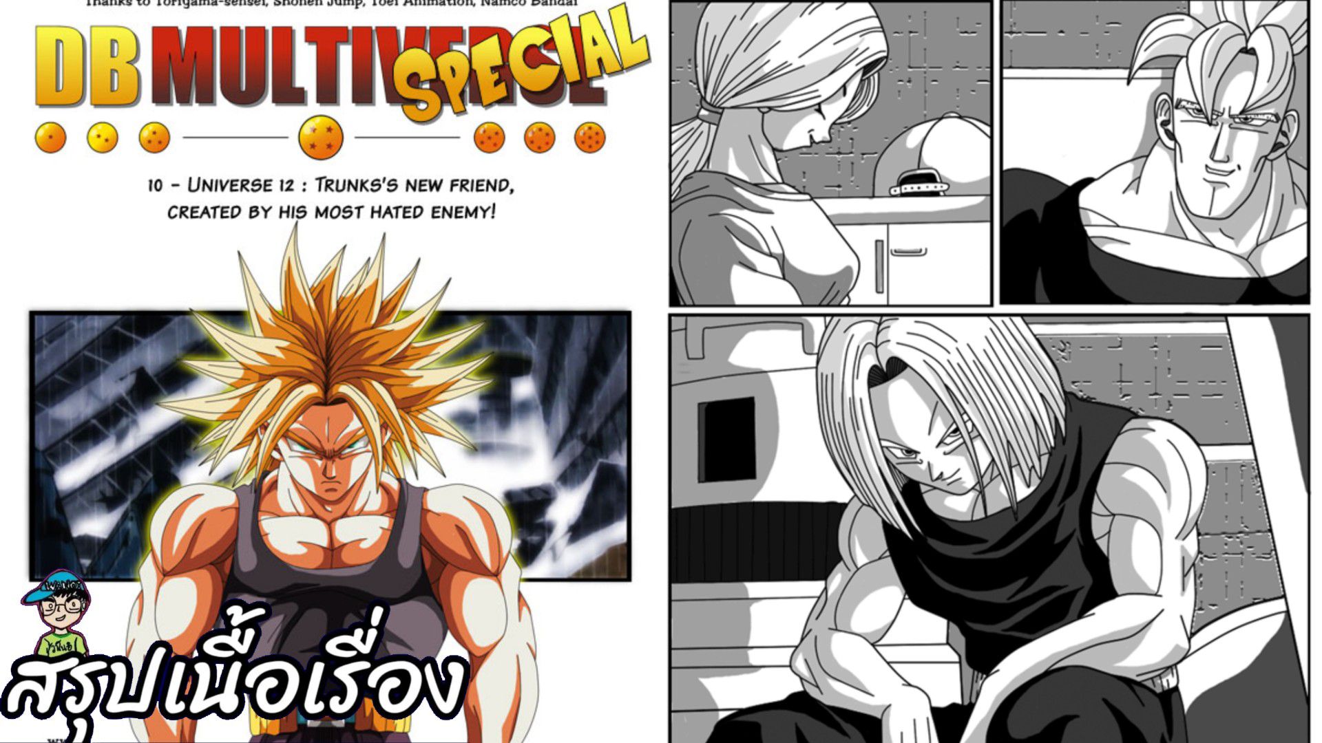 เรื่องนี้เกิดขึ้นในจักรวาลที่ 12 ปี 790 ทรังค์ออกเดินทางมายัง ถ้ำมนุษย์ดัดแปลงของ ดร เกโร่ ฉันเกลียดที่นี่จริงๆ...! ทรังค์เข้ามายังห้องใต้ดิน เป็นห้องทดลองลับ เอาล่ะ แกอยู่ที่ไหน? หึๆ...เจอแล้ว! ไม่กี่วันต่อมา… ที่บ้านของบูลม่า มาทดสอบกันหน่อย ฉันจะเปิดมันละนะ... คลิก! หุ่นยนต์ตัวนี้ลืมตาขึ้น มันมองไปรอบๆ สบตากับใครบางคน หมายเลข 16 ใช่ไหม ใช่ ซุน โกคู เสียชีวิตไปแล้วเมื่อหลายปีก่อน Οκ. จากที่ฉันรู้... ดูเหมือนว่าแกต้องการปกป้องโลก ธรรมชาติ และชีวิตโดยทั่วไป นั่นถูกต้องไหม? ...สิ่งนั้นใช้ได้กับมนุษย์ด้วยไหม? แกจะช่วยเหลือและปกป้องมนุษย์ไหม? ได้ ฉันก็ชอบมนุษย์เหมือนกัน คำถามสุดท้ายแล้ว Aaaaaahhh ทรังค์แปลงร่างเป็น ss แกสามารถสแกนระดับพลังของฉันได้ใช่ไหม หมายเลขสิบหก? แกรู้ไหมว่าฉันแข็งแกร่งขนาดไหน? รู้ แกคงเห็นแล้วว่าฉันแข็งแกร่งกว่านาย คุณคือ. คนที่แข็งแกร่งกว่ามากและมากกว่าที่ ดร เกโระสามารถจินตนาการได้ เรื่องนั้นฉันรู้อยู่แล้ว แล้วนี่คือข้อตกลง เราซ่อมแกให้ได้ เราจะคืนแกให้กลับมาเป็นปกติและใช้งานได้ดี แต่แกจะต้องให้เวลา พลังงาน และพลังแก่เรา เพื่อช่วยฟื้นฟูมนุษยชาติ แกโอเคกับเรื่องนั้นมั้ย? คงจะเป็นเรื่องน่ายินดีอย่างยิ่ง และหากแกกระทำการใดๆ ก็ตาม ที่อาจเป็นอันตรายต่อมนุษย์ได้ ฉันจะทำลายแกทันที เช่นเดียวกับที่ฉันทำลาย #18 และ #17 ชัดเจนนะ ได้ ชัดแจ๋วเลย แม่...มาสร้าง #16 กันใหม่เถอะ! แล้วตอนนี้ก็จบลง #สรุปเนื้อเรื่อง #วาโนอิ #dbm